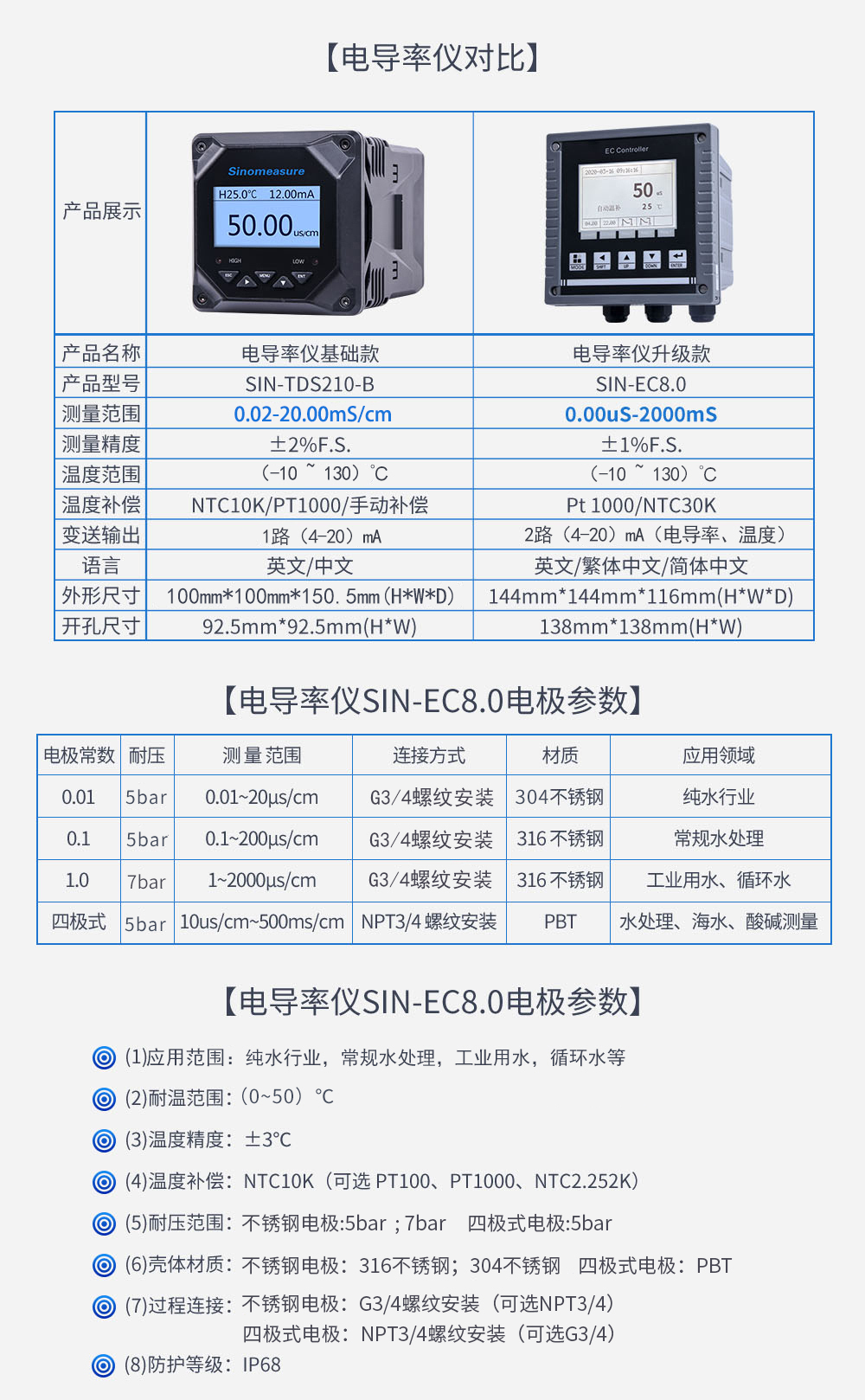 聯測儀表SIN-EC8.0在線電導率儀RO過程、水處理、CIP清洗、海水淡化
