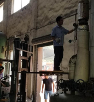 △勞動(dòng)人民的智慧還是無(wú)窮的,現(xiàn)場(chǎng)技術(shù)因?yàn)楦叨炔粔騽?dòng)用了叉車(chē)。