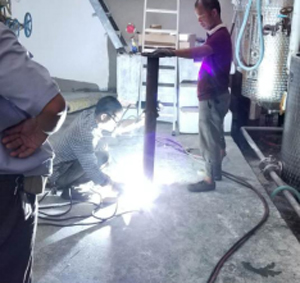 焊接:準(zhǔn)備好所有的配件,我們就要開(kāi)始焊接過(guò)程了:將夾持用的法蘭,固定的螺紋底座安裝于管道中。