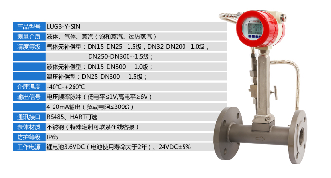 LUGB-Y-SIN高精度渦街流量計(jì)對(duì)過(guò)熱蒸汽、飽和蒸汽、壓縮空氣和一般氣體、水和液體的計(jì)量和控制。加厚本體,可有效避免現(xiàn)場(chǎng)管道振動(dòng)帶來(lái)的數(shù)據(jù)波動(dòng)和誤差。